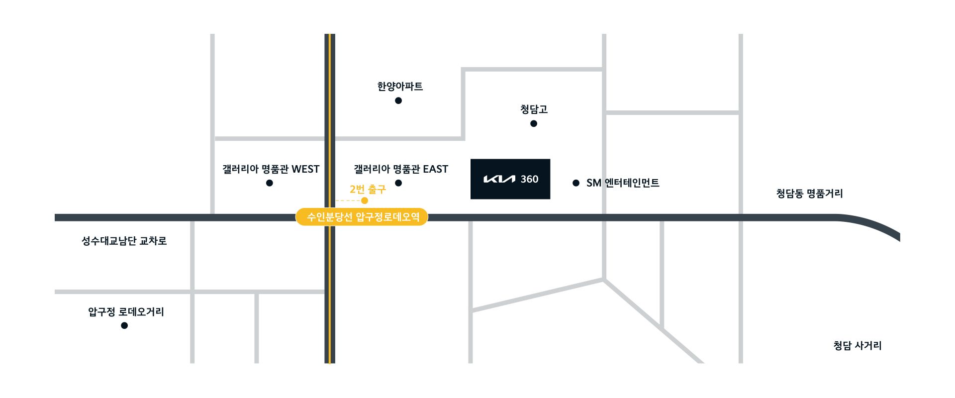 | 지하철 | (수인분당) 압구정로데오 역 2번 출구로 나와 청담사거리 방향으로 약 263m 이동 |
